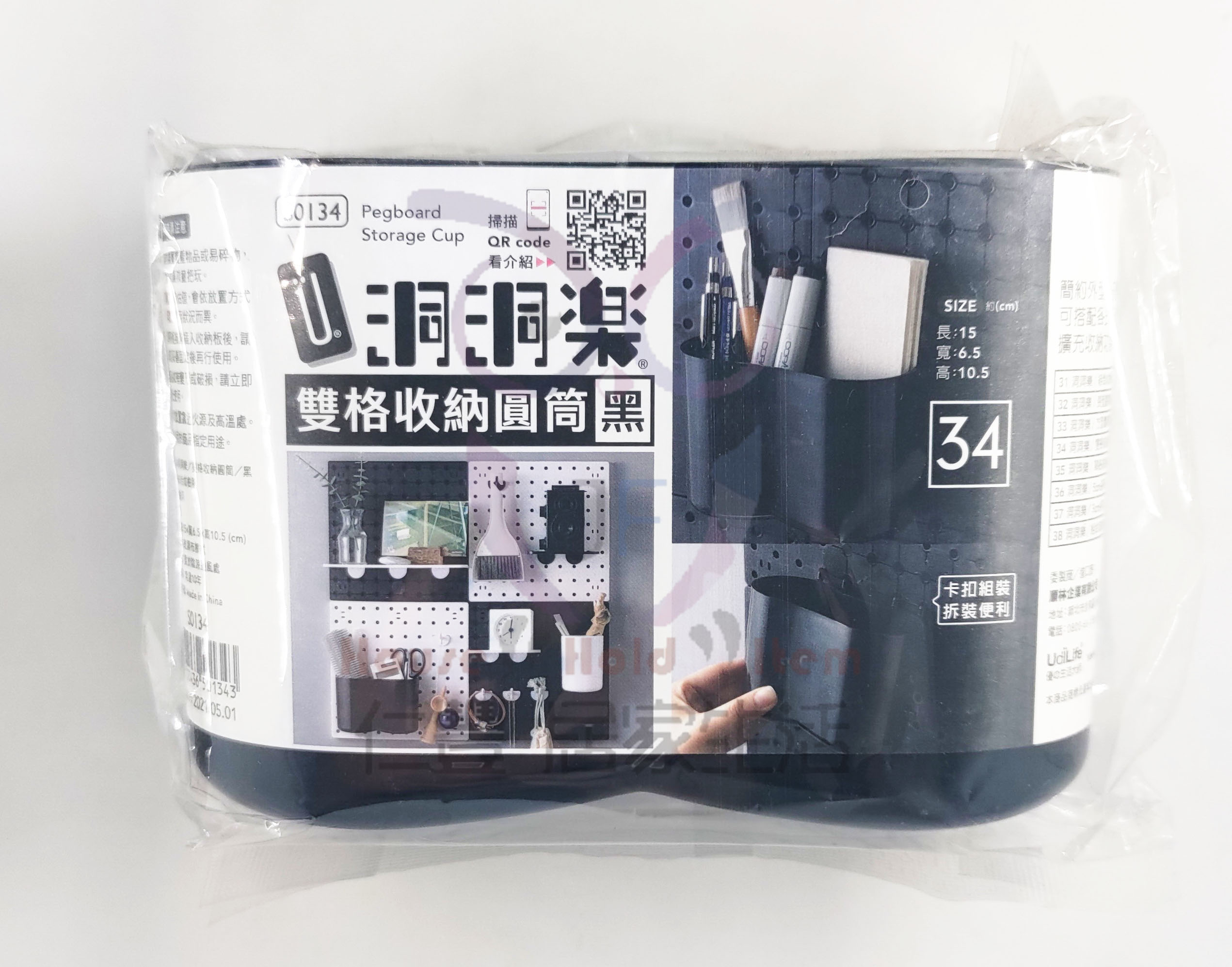 S0134 洞洞樂 雙格收納圓筒 黑
