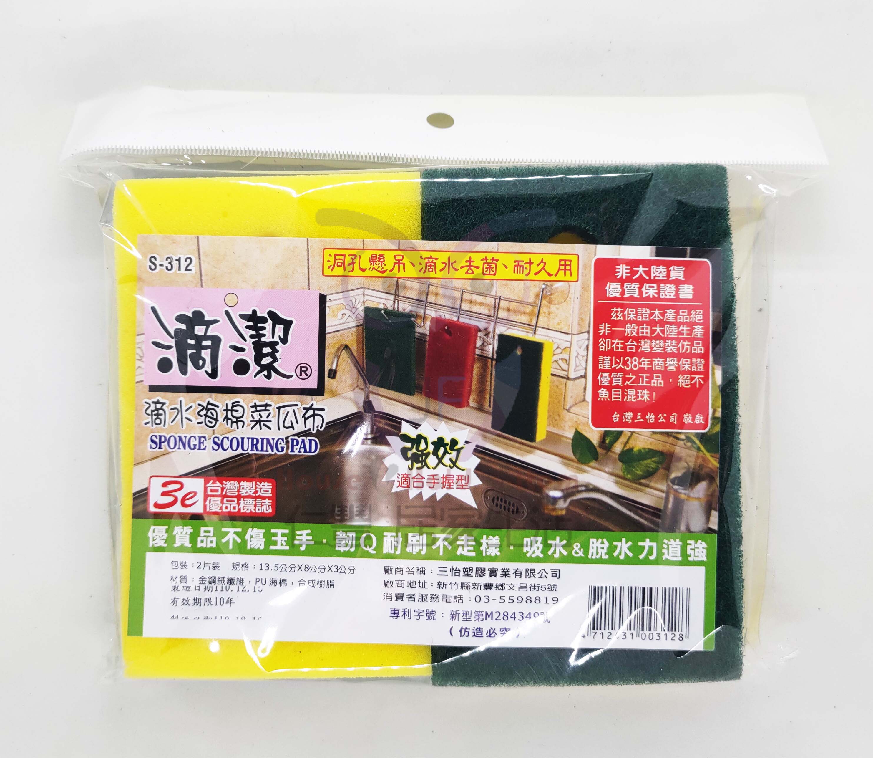 S312 滴潔海棉菜瓜布 2入